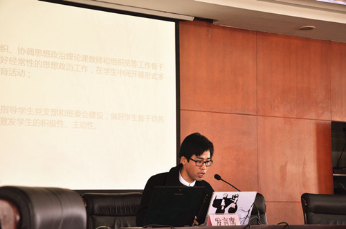 管理系党总支副书记孙金动老师讲解如何加强学生干部队伍建设