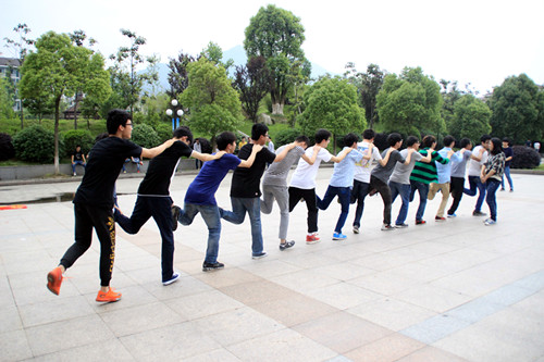 由主持人简要介绍了活动目的与具体规则后,风采大赛正式开始。本次大赛分为大胆向前走,传递呼啦圈和链接加速三项比赛。各活动班级以15人一组分三小组各参加了三项活动。此次的三项活动各有千秋,而最后的链接加速环节更是将活动推向高潮。链接加速是对同学们体能和默契的考验。参赛同学经过多天的训练显然默契十足,单脚借力虽不容易,但一个团队的团结与默契能克服所有的障碍。在每个小组肩并肩到达终点时,现场观众都报以热烈的掌声。最终,经过两个多小时的激烈角逐,风采大赛完美落幕。