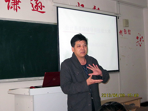 根据学院的部署,为了推动系辅导员职业化、专业化发展,提升辅导员职业技能和工作水平,会计系在2013年4月上旬开展首届辅导员职业技能大赛,4月9日下午在1号教学楼1207教室进行比赛第二阶段——现场展示评比。