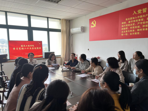 10月26日下午 ,建筑工程学院组织全体党员教师在行政楼1519室召开学习贯彻党的二十大精神专题会议,学习领会党的二十大报告,并就贯彻落实党的二十大精神进行安排部署。本次会议由党总支副书记陈敏洁主持。