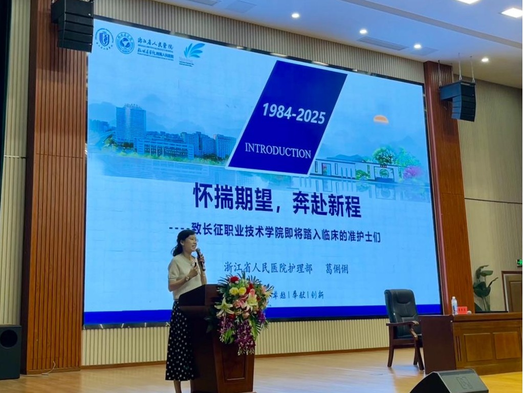 葛俐俐作题为《怀揣期望,奔赴新程》的报告。她立足行业发展前沿,阐述了新时代护理工作的专业价值与发展机遇,勉励同学们要锤炼职业素养,将实习经历转化为职业竞争力。