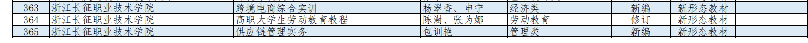 近日,由浙江省高等教育学会组织的浙江省高职院校“十四五”第二批重点教材立项项目评选结果揭晓,经学校申报、省教材建设分会初审,专家评审和学会网站公示等程序,我校商务与贸易学院杨翠香、申宁老师主编的《跨境电商综合实训》,商务与贸易学院包训艳老师主编的《供应链管理实务》,马克思主义学院陈澍、张为娜老师主编的《高职大学生劳动教育教程》,以及财务与会计学院周艳、叶梁军老师主编的《中小微企业会计岗位综合实训》顺利入选浙江省高职院校“十四五”第二批重点教材立项项目。